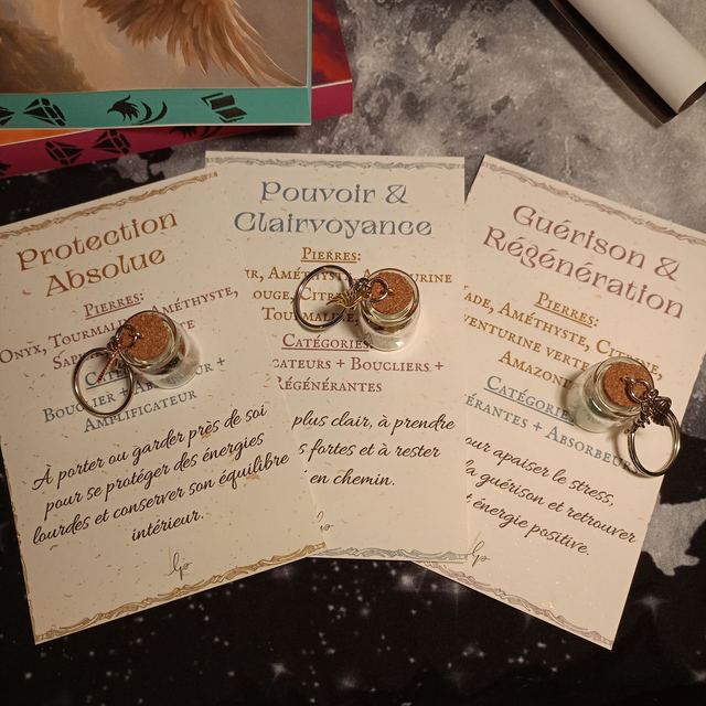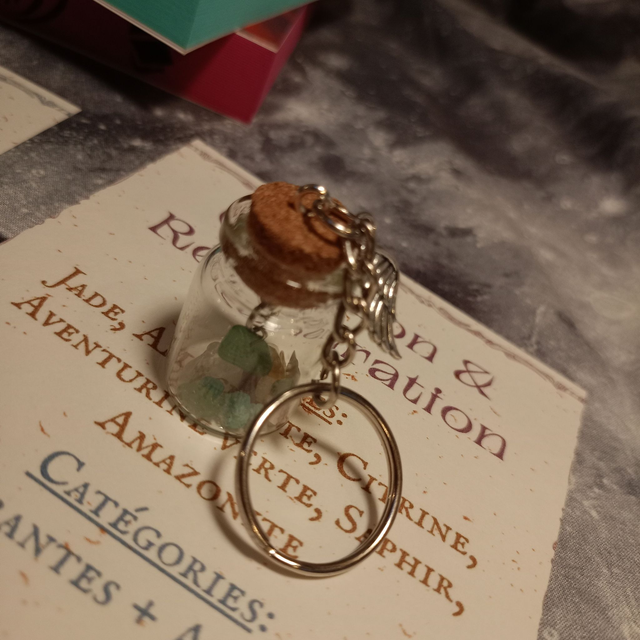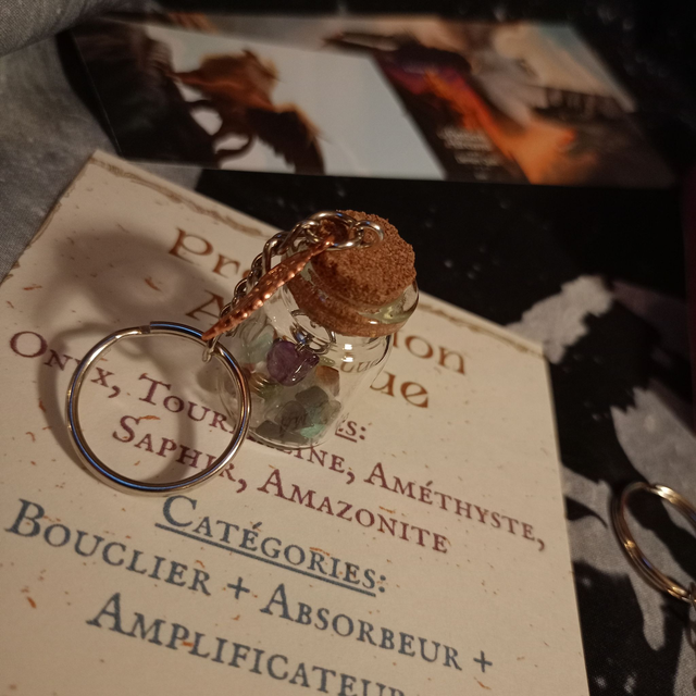 Porte-clés ou bijou de sac, contenant pierres précieuses de catégories suivantes : Bouclier, Régénérante, Absorbeur, Amplificateur.