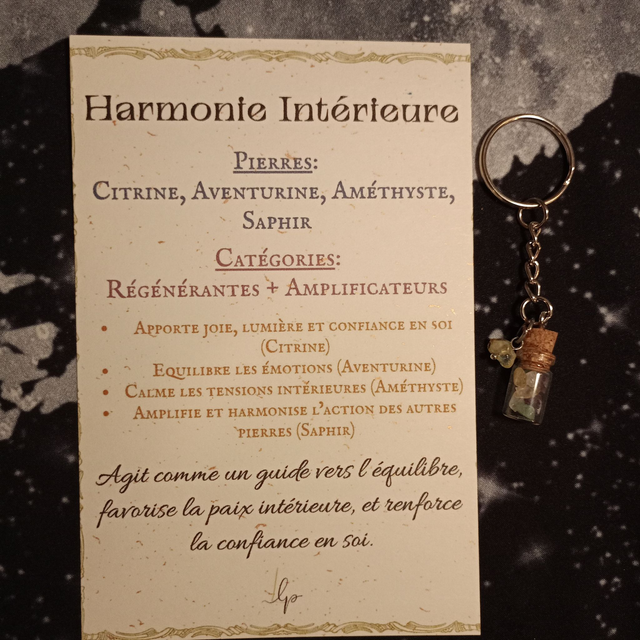 Porte-clés ou bijou de sac, contenant pierres précieuses de catégories suivantes : Bouclier, Régénérante, Absorbeur, Amplificateur.